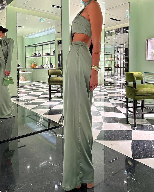 Haylie | DAMES KORTE MOUWEN TOPS MET HALS UITSLIJPING EN HOGE TAILLE ROKKEN
