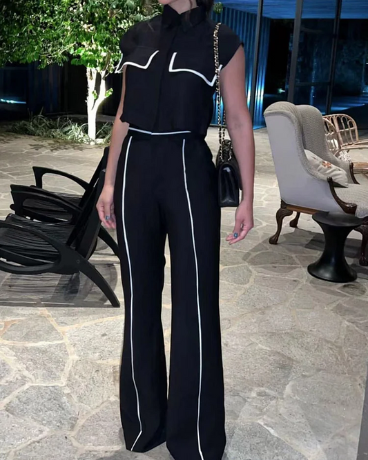 Ensemble deux pièces - Top et pantalon à revers Fashion