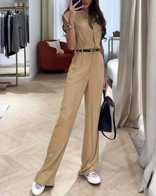 Ensemble deux pièces décontracté, chemise et pantalon de couleur unie
