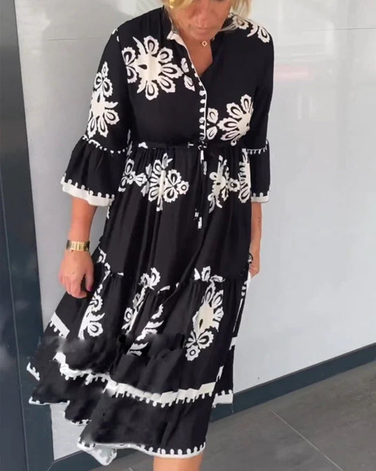 Robe Élégante Longue Bohême à Encolure en V Fendue