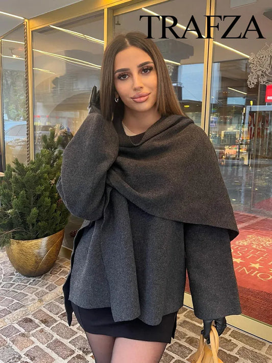 Tessitura™️ Asymmetrische sjaal Vrouwen Korte gebreide jas