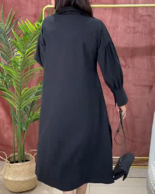 Effen kleuren casual jurk met lange mouwen