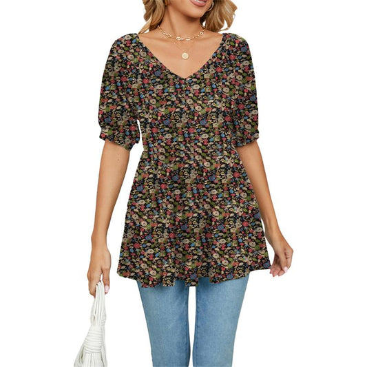 T-shirt à manches longues et col poupée en dentelle pour femmes