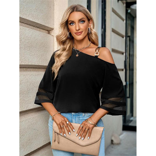 Haut décontracté à épaule unique avec boucle en métal pour femmes
