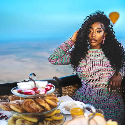 Meghan | DAMES GEBREIDE JURK MET PRINTPANELEN