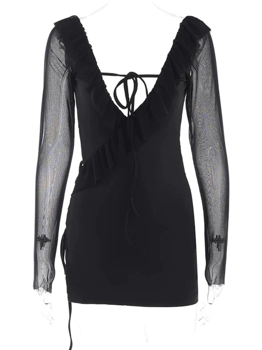 Jewel | DAMES JURK MET TRANSPARANTE MESH MOUWEN EN RUFFLE, MINILENGTE