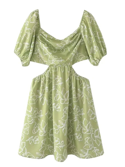Rosemary | ES JURK MET OPEN RUG, HOGE TAILLE EN VETERDETAILS - MINI-JURK