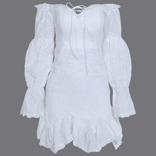 Gemma | Elegante dames mini-jurk met effen mesh en pofmouwen