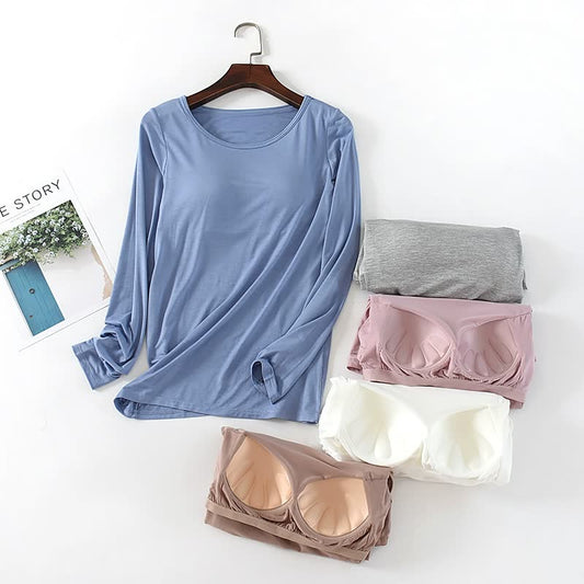 T-shirt à manches longues pour femme avec rembourrage de poitrine