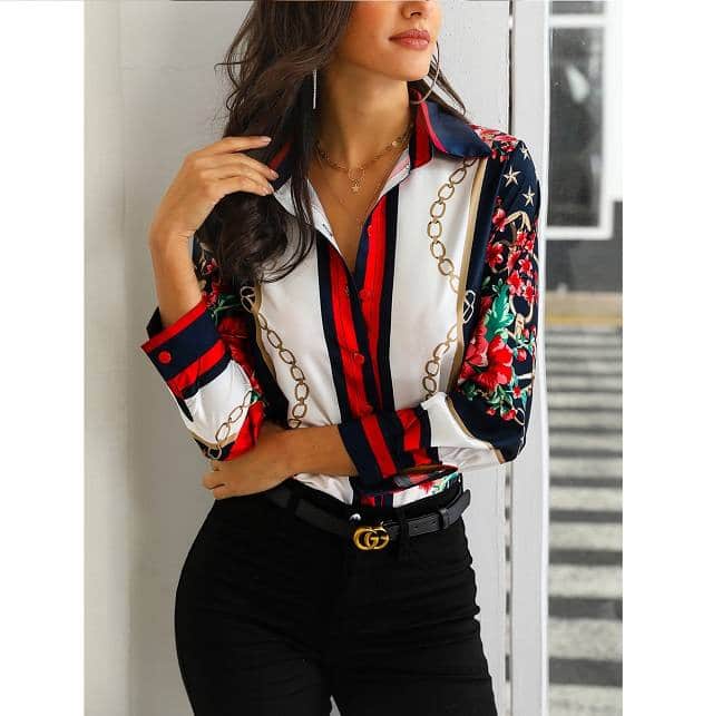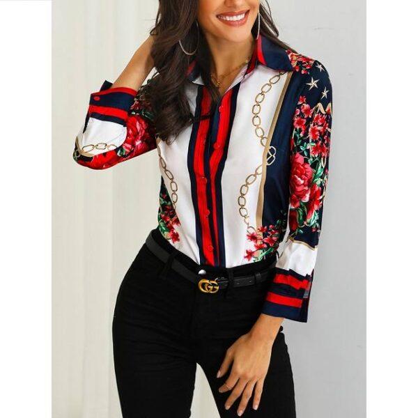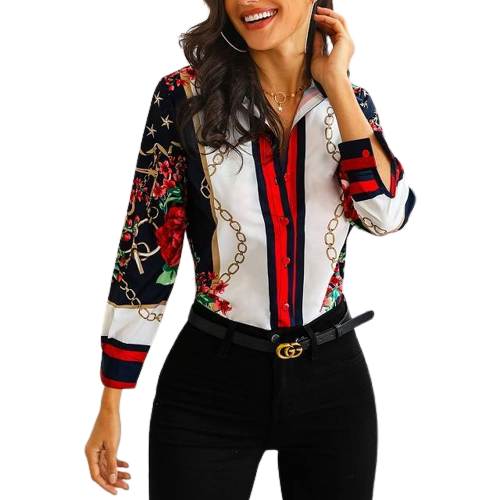 Die modisch schicke Damenbluse wurde für Frauen entworfen, die einen sportlich-eleganten Stil suchen. Hergestellt aus hochwertigem Polyester, ist sie weich und angenehm zu tragen. Mit ihrem Umlegekragen und dem Knopfverschluss verleiht sie jedem Outfit eine raffinierte Note. Das Blumenmuster auf dem dünnen Stoff sorgt für einen frischen und leichten Touch.