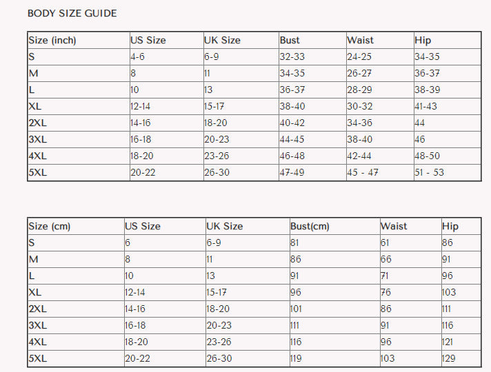 ✔ Le tableau des tailles ci-dessous fait référence aux mesures des vêtements, PAS à vos mesures corporelles.