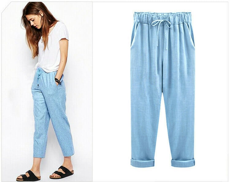 Cripes Pantalon baggy à taille élastique de couleur unie pour les grandes tailles.