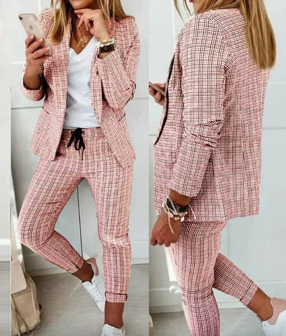 L'ensemble blazer élégant Elena est fabriqué dans un tissu doux et confortable et offre une coupe classique. Le pantalon a une taille réglable et des jambes fines, ce qui lui donne un look moderne. Cet ensemble est un incontournable pour toutes les occasions, qu'elles soient formelles ou décontractées, et complétera parfaitement votre garde-robe !