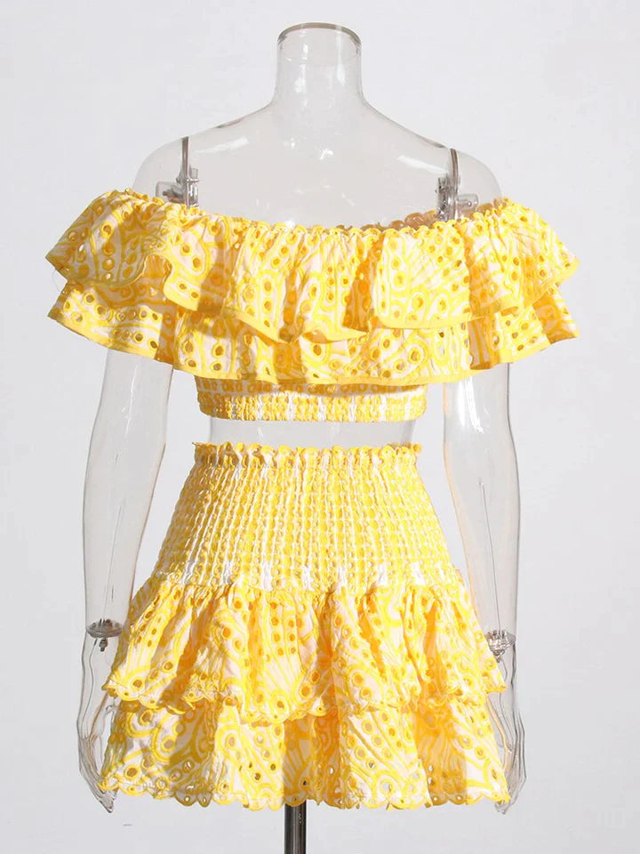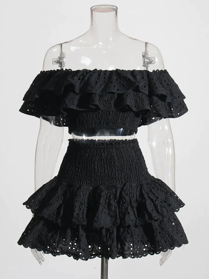 Haylie | DAMES KORTE MOUWEN TOPS MET HALS UITSLIJPING EN HOGE TAILLE ROKKEN