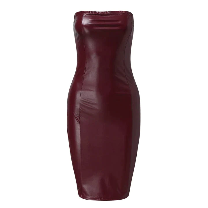 Jimena | DAMES JURK VAN LEREN STOF ZONDER BANDJES EN MET BLOTE SCHOUDERS