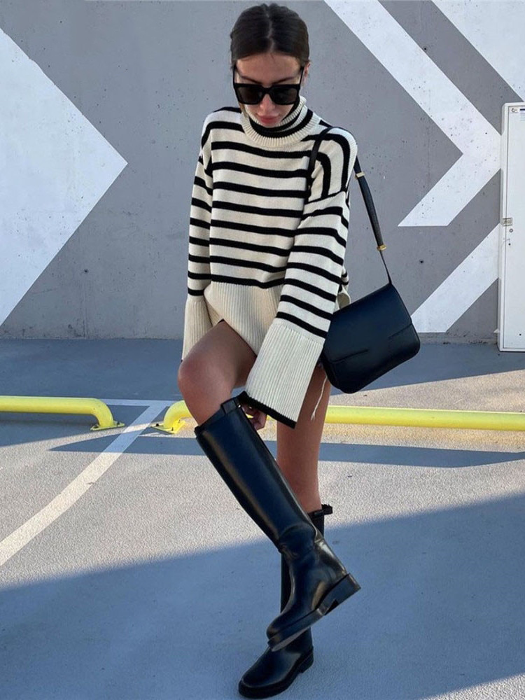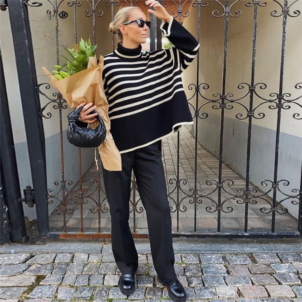 Omarm de allure van Parijse chic met de Signature Stripe Sweater van Bauble. Deze knusse trui is gemaakt met de iconische strepen van het merk en biedt warmte en stijl in een ontspannen pasvorm met geribde boorden. In combinatie met getailleerde stukken of jeans met hoge taille is deze trui het toppunt van modieus comfort.
