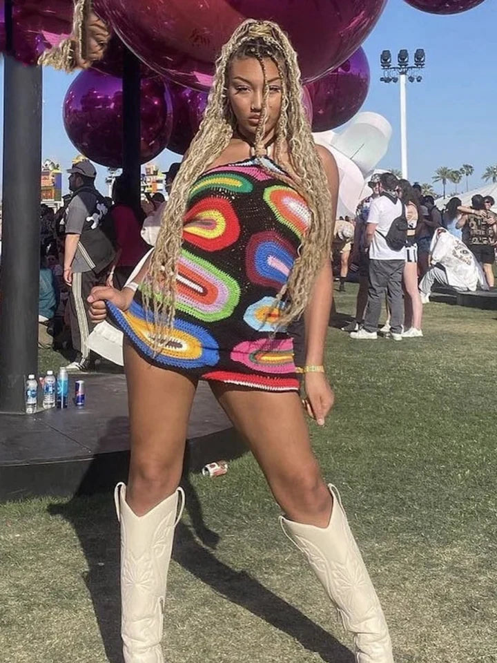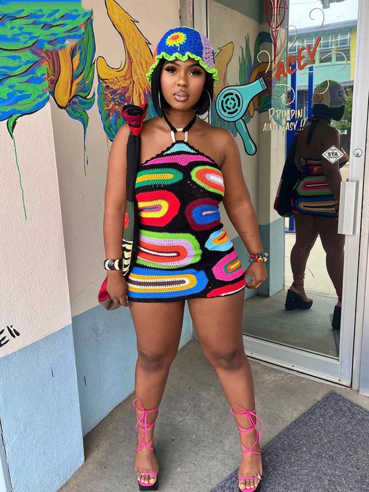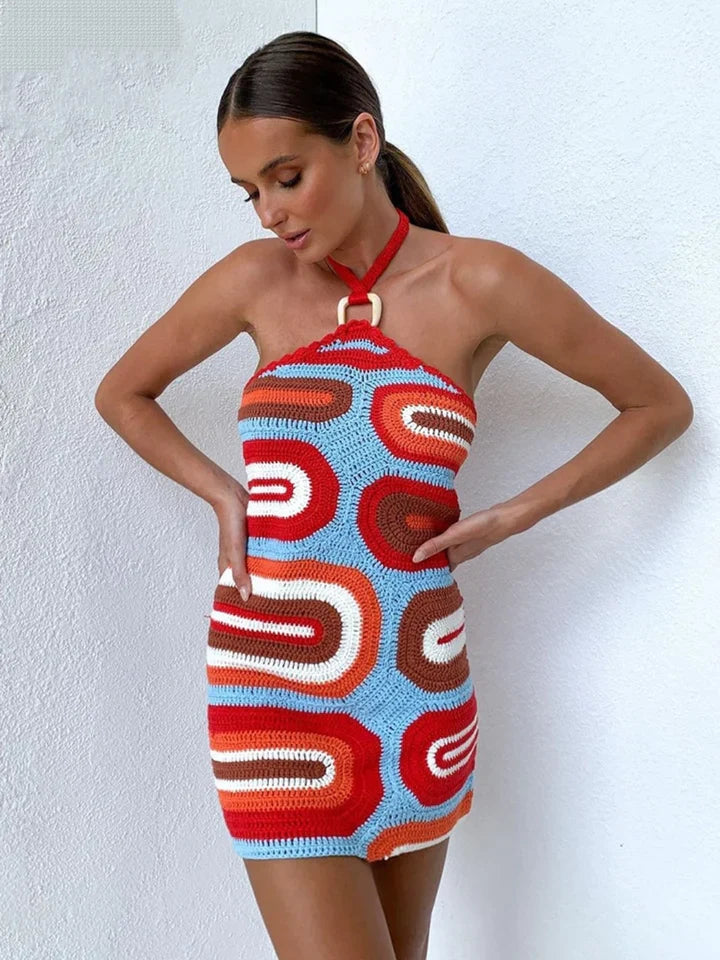 Meghan | DAMES GEBREIDE JURK MET PRINTPANELEN