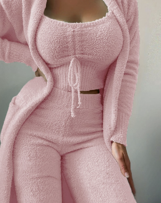 Bienvenue dans notre combinaison éponge 3 pièces exclusive, où le confort et le style s'associent sans effort pour une expérience extraordinaire. Cette combinaison est conçue pour vous envelopper d'un tissu éponge d'une douceur inouïe, tandis que vous vous transformez en une apparence élégante avec une touche de sexy. Dorlotez-vous avec cet ensemble unique et appréciez le sentiment de bien-être qu'il vous procurera.