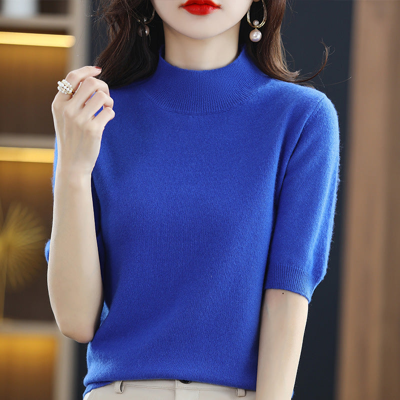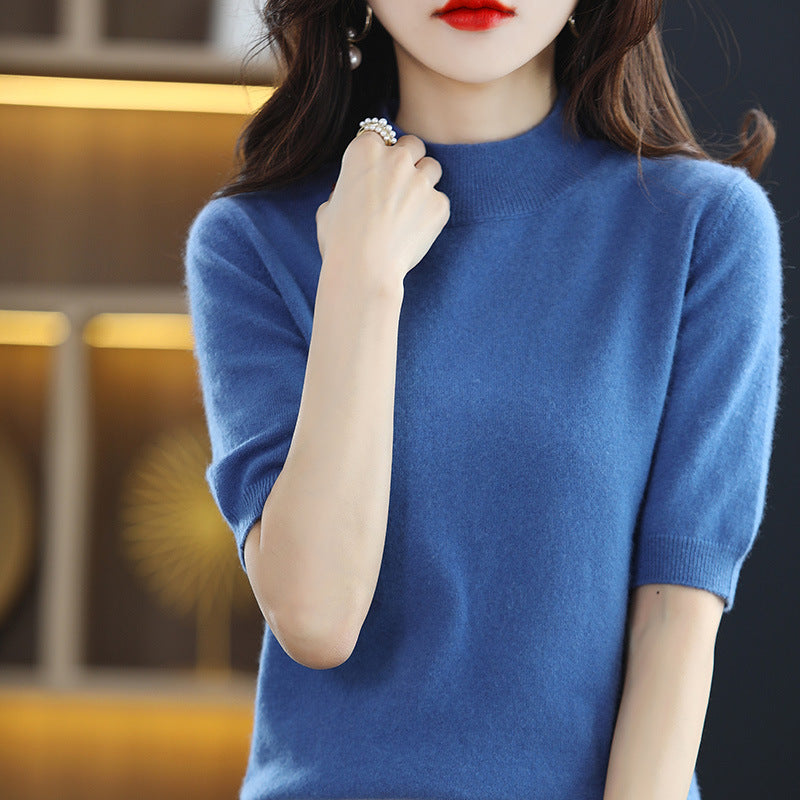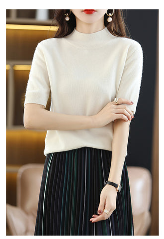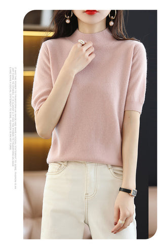 Matériau doux: le tricot à manches courtes pour femme est fabriqué en matériau tricoté doux, doux pour la peau et élastique de haute qualité. Ce haut vous offrira une coupe confortable et légère.