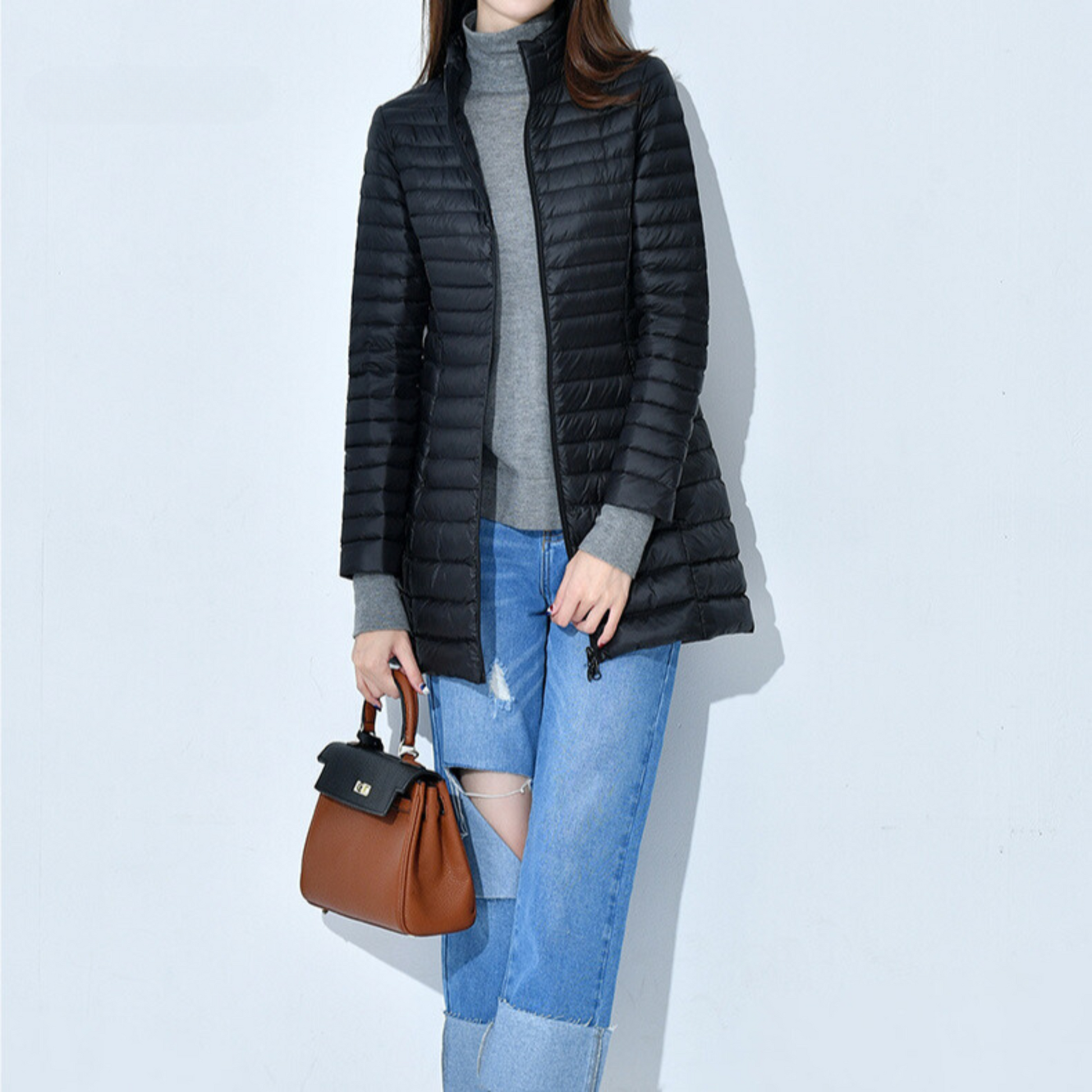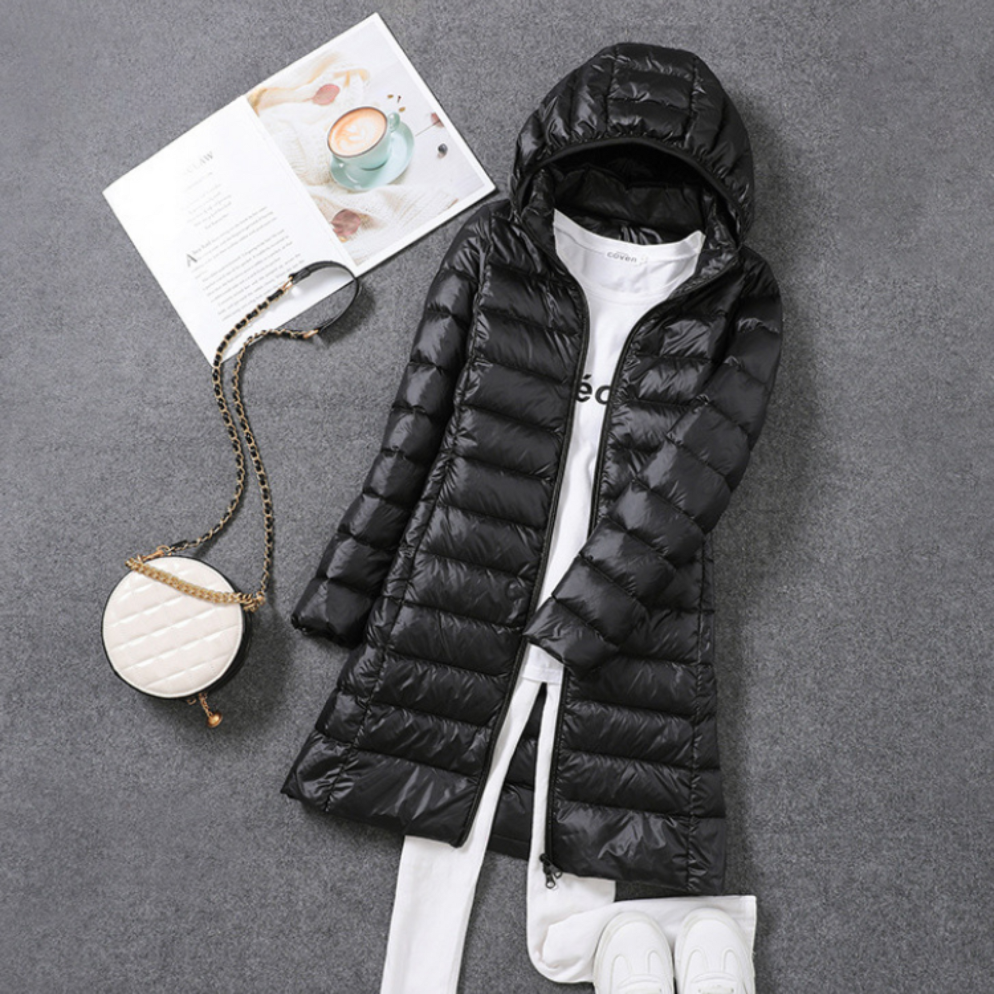Als de bladeren beginnen te vallen en de temperatuur daalt, is het tijd voor onze Sasia's herfst-/winterdonsjas. Voorzien van een capuchon en een praktische rits, biedt deze jas niet alleen bescherming tegen de kou, maar ook een stijlvolle uitstraling die past bij elk outfit.