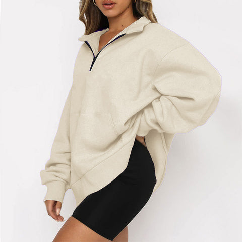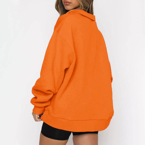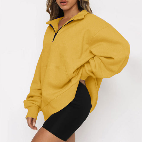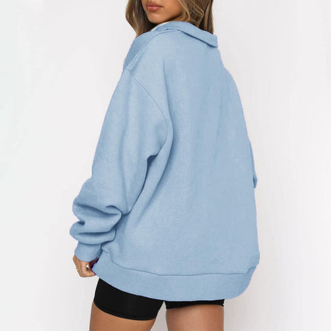 1 * Sweat-shirt à manches longues surdimensionné à demi-fermeture éclair pour femme