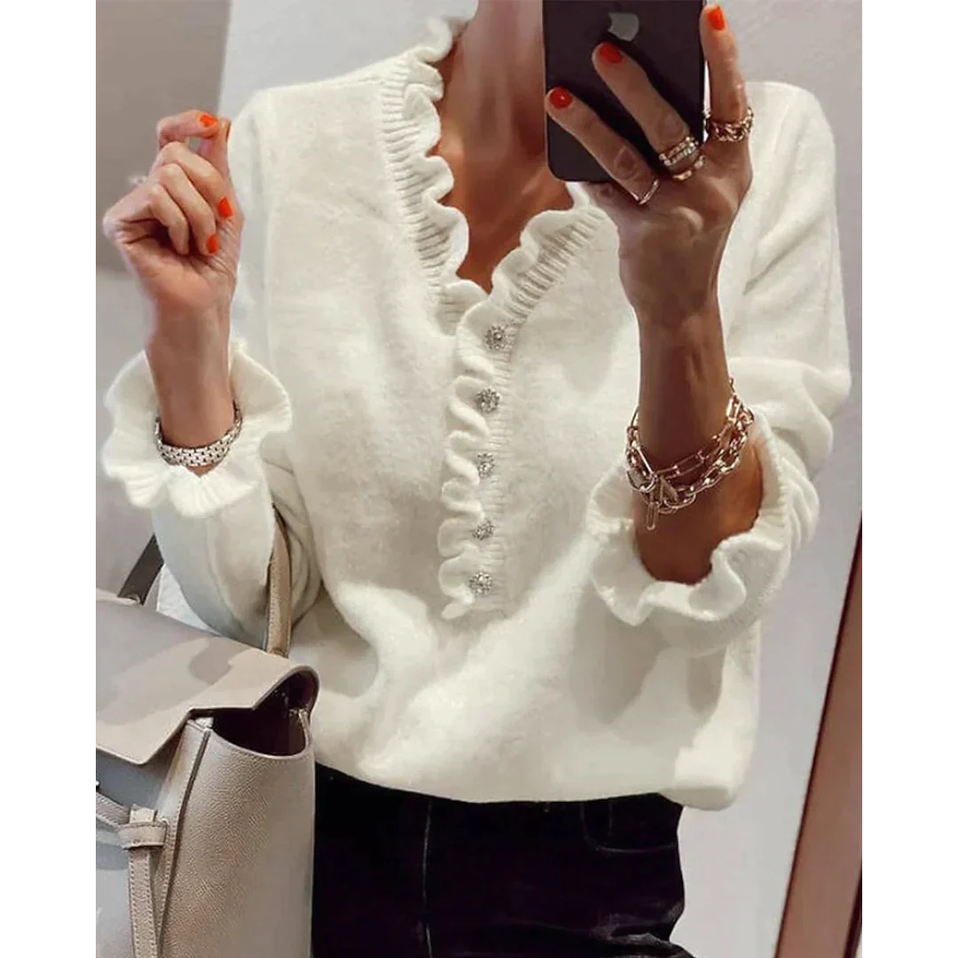 Of je deze trui nu combineert met een jeans voor een casual dag of gekleed bent voor een meer gepolijste look, deze trui is onmisbaar in je garderobe voor de moderne vrouw.