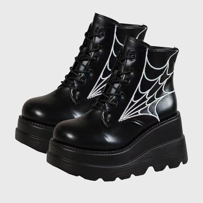 Omarm je innerlijke spin met deze elegante enkellaarzen met spinnenwebdesign!